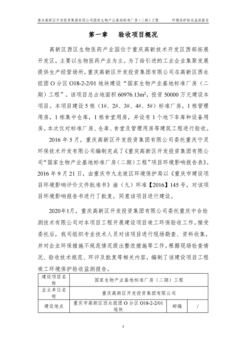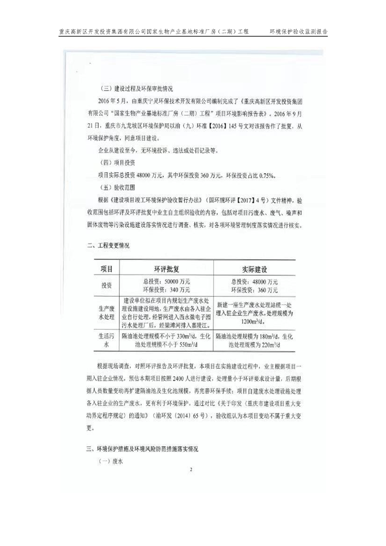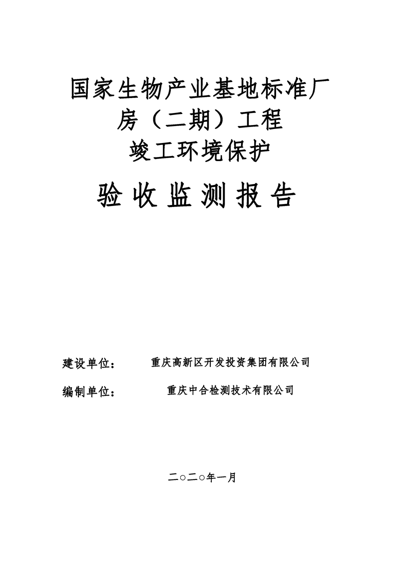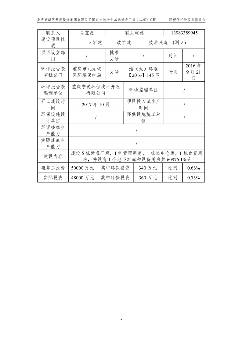 国家生物产业基地标准厂房(二期)工程竣工环境保护信息公开表