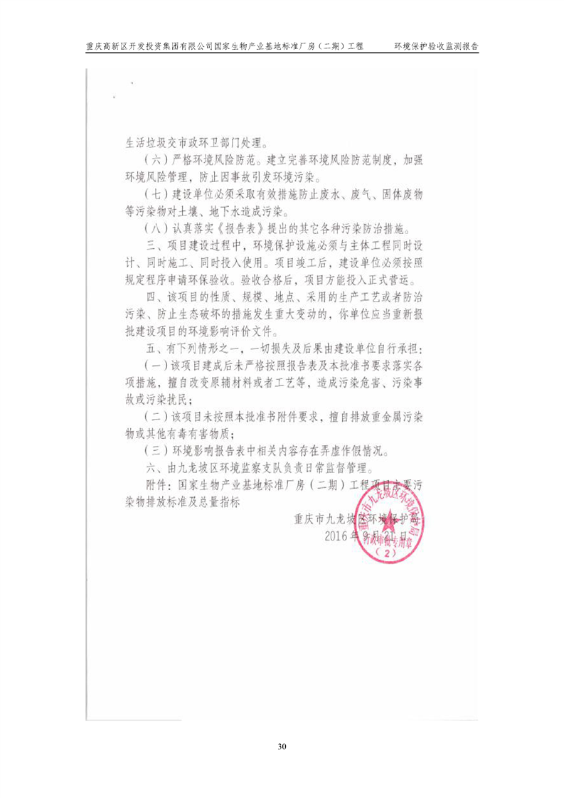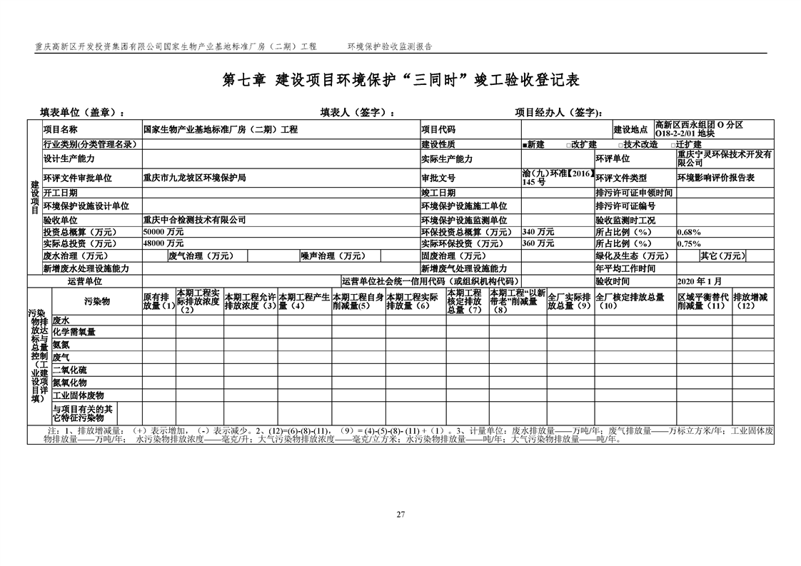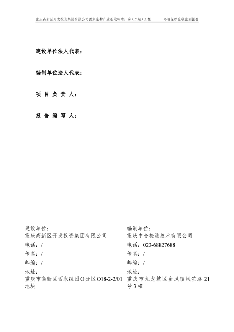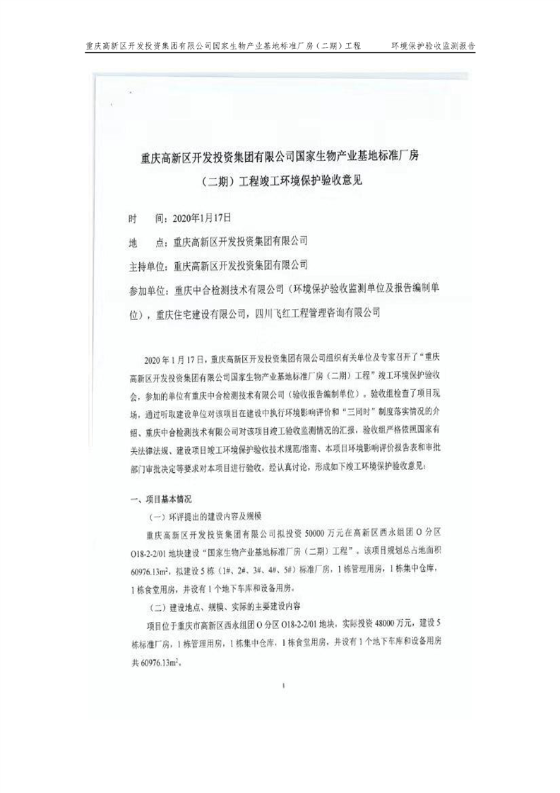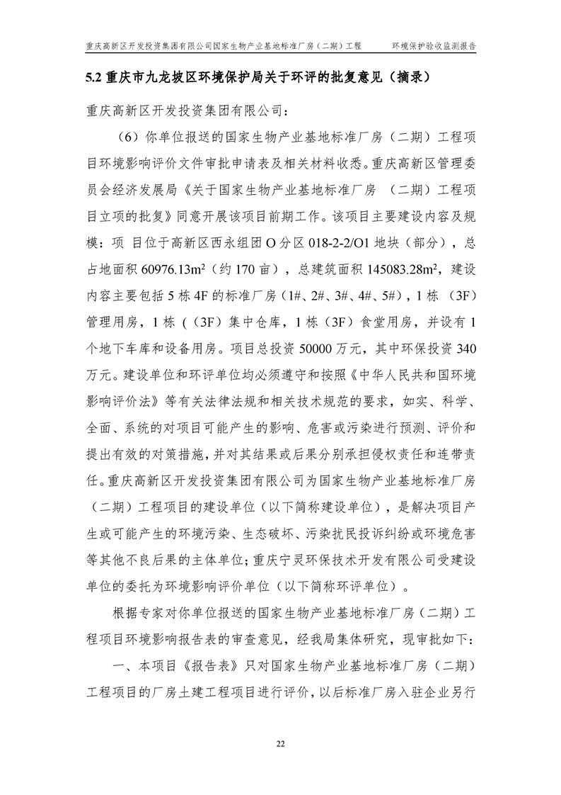国家生物产业基地标准厂房(二期)工程竣工环境保护信息公开表