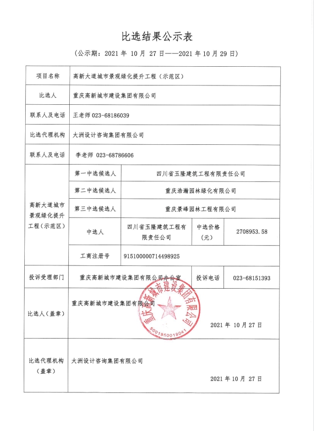 高新大道城市景观绿化提升工程(示范区)比选公示表