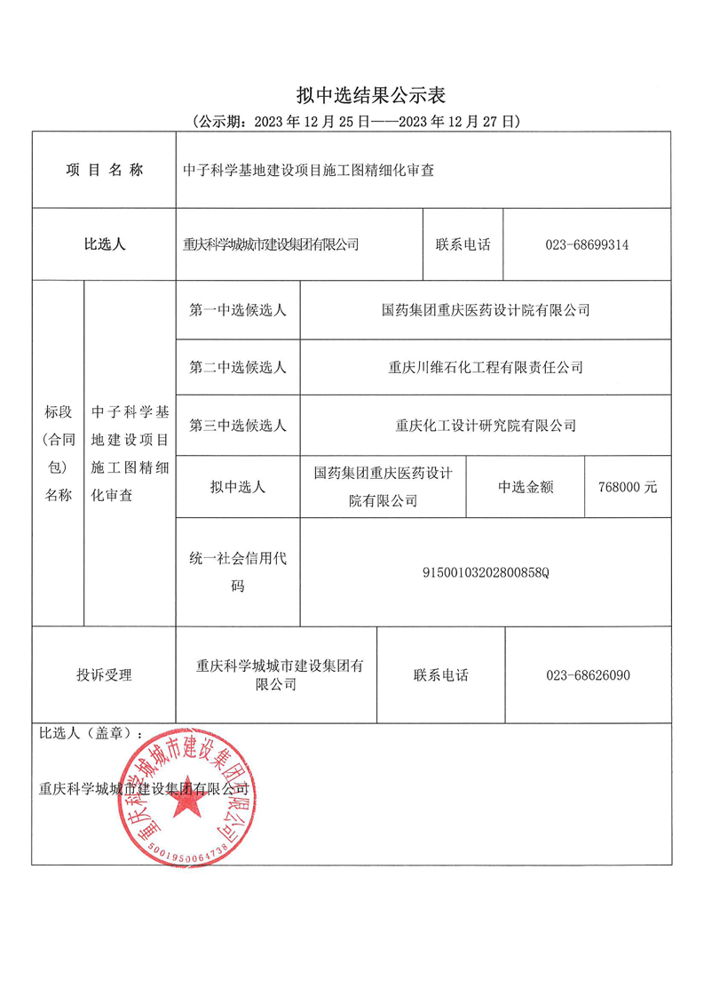中子科学基地建设项目施工图精细化审查拟中选结果公示