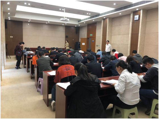本次测试采用闭卷形式,考题分为公共题和专业附加题。公共题部分主要涵盖“三重一大”议事制度、公文管理、纪检监察、日常费用报销等方面的制度;专业附加题部分根据部门和岗位针对性出题,主要来自于财务管理、招商引资、资产管理等制度。在考试过程中,集团公司领导对六个考场进行巡视,保证考场纪律。