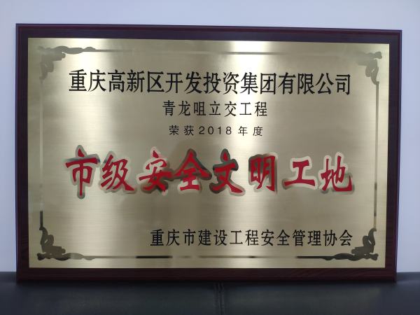 近日,重庆市建设工程安全管理协会为青龙咀立交工程颁发了“市级安全文明工地”奖项。