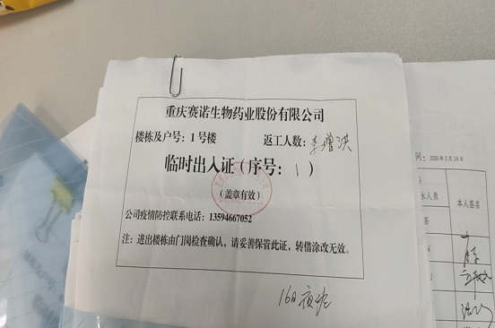 高开投集团为应对园区企业复工复产的新局面,进一步推进科学防控,稳固防疫基础,落细落实高新区关于新型冠状病毒疫情防控期间企业复工复产工作精神。自2月11日起,我司在金凤生物医药园、含谷标准厂房试行园区人员“一人一证”,企业提前一天将复工人员的姓名及工作楼栋报至我司,我司相关部门制作临时出入证,并加盖鲜章。上班当天由门岗检查人员根据企业申报的复工人员名单核对复工人员身份证,并测试体温,发放临时出入证,方可进入园区复工。下班时,复工人员出示临时出入证,并交至门岗处回收,方可顺利离开园区。