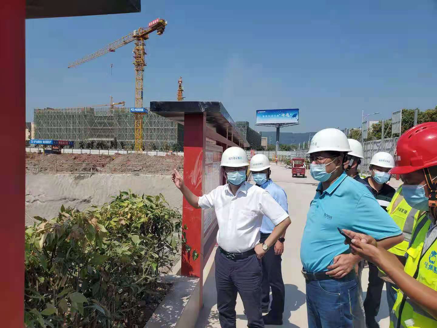 8月1日,城市建设集团董事长朱诗锦、总经理刘锦鸿分别带领公司班子成员及相关部门负责人,深入各建设项目工程现场开展疫情防控专项检查。