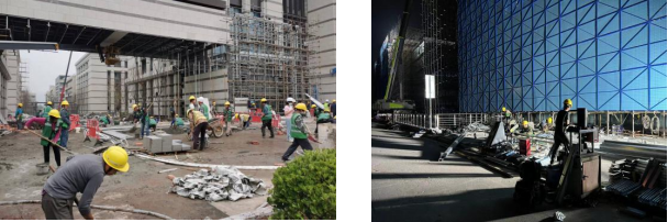 二、分支施工,结合既有建筑布局,划分施工区域,分析各区域施工难易程度,制定工作面分段移交节点,确保各作业面交叉施工,总作业面约4万㎡,分20个班组,平行施工立体推进。