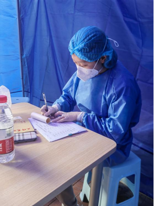 志愿服务中的她就像一个停不下来的陀螺,永远充满着活力:当她协助维持核酸检测秩序时,会耐心细致地提醒居民做好疫情防控措施;当她遇到咨询防疫政策的居民时,会用通俗易懂的语言为他们答疑解惑;当每日核酸结束后,她又马上加入“搬运工”行列,帮助隔离在家的居民配送物资,分货、拣货、送货上门,从未出错;当她碰到被独自封控在家的老人,会暖心的送去自己做的饭菜,贴心的陪伴老人聊天;趁着中间空闲的时候她又背起消毒工具对公共区域进行消杀,一天下来,防护服里的衣服被汗水打湿数次,但她的脸上始终洋溢着热情的微笑。