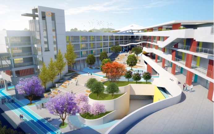 教育关系着一个民族的希望、一个国家的发展,更关系着千家万户的希望。具有“科学之城、创新高地”鲜明定位的西部科学城重庆高新区,始终坚持教育优先发展战略地位,以智慧教育为支点,全力打造西部教育高地、建设一流教育强区。重庆大学城沙坪坝第二小学是重庆大学城沙坪坝小学的扩建工程,由重庆高新区公共服务局和城市建设集团共同建设,工程位于重庆大学城沙坪坝小学东侧,紧邻重庆大学虎溪校区,用地整体呈三角形,用地面积15373.30平米,总建筑面积25379.79平米,共设有24个班。
