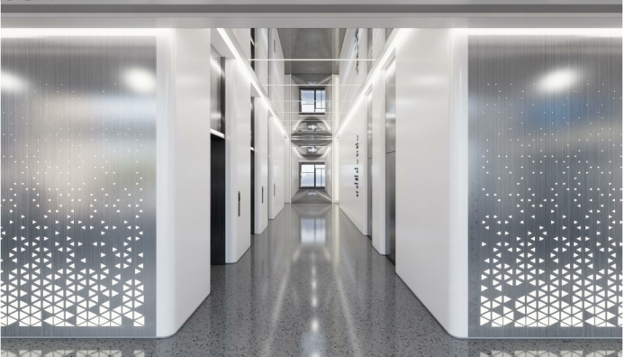 整个室内空间整体设计风格力求突出科技感和未来感,通过细节设计的营造“智能网联汽车”的元素。此次设计主要利用几何团、金属感材质和线性冷光源等方式营造富有层次的科技氛围感。整体风格简约大气,为未来办公空间的打造提供参考。