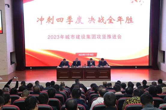 2023年11月16日,城市建设集团在管委会4号楼106召开2023年 “决战四季度、夺取全年胜”攻坚推进会,动员公司上下提振精神、抓纲带目,全力强攻冲刺第四季度工作,推进全年重大部署重点工作落地见效。公司党委书记、董事长朱诗锦主持会议并讲话,公司领导班子出席会议,公司全体干部职工参加。