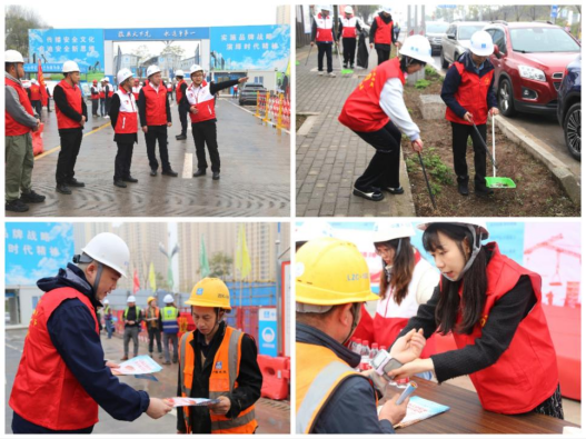 在金凤城市中心项目现场,城市建设集团党委副书记、总经理刘锦鸿和中建三局三公司重庆公司总经理王炼共同为“学雷锋示范岗”揭牌,为“学雷锋志愿服务队”授旗并宣布活动正式启动。活动开始后,刘锦鸿同志带队对项目安全生产有关措施进行检查,另一边,志愿者们分为三支队伍分别开展建设工地周边区域整理清扫、向工人发放安全生产宣传资料、为工人进行血压监测活动。