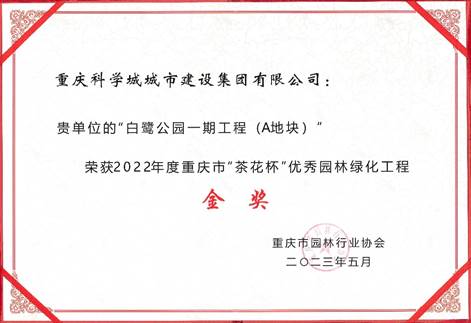 “茶花杯”优秀园林绿化工程奖是重庆市唯一的省级景观优秀施工工程奖项,是重庆园林行业对园林工程的最高质量奖项,获奖项目代表了市内园林工程施工工艺、项目管理的领先水平。
