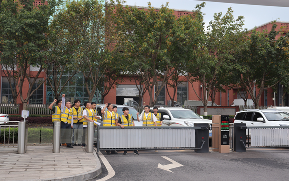 随着现场总指挥下达演练开始命令,工人们蜂拥而上,将项目部大门堵得“水泄不通”。