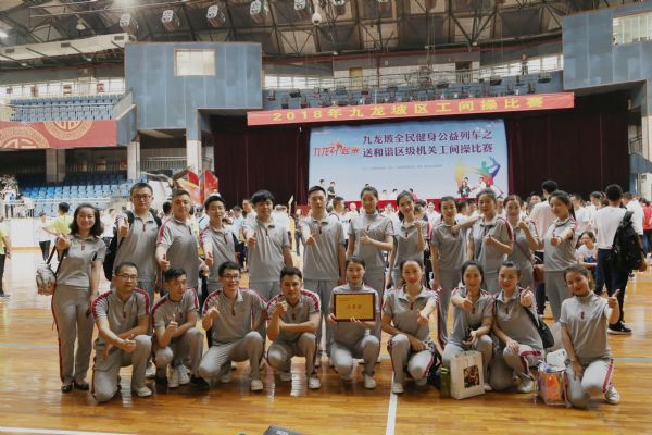5月20日,区体育局组织的“2018年九龙坡区工间操比赛”在杨家坪中学体育馆举行,全区各机关部门、街镇、企事业单位等45支队伍共1020名运动员参加比赛。高开投集团28名参赛队员以昂扬向上、奋力拼搏的精神风貌和较高比赛水平,荣获此次比赛企事业单位组三等奖。